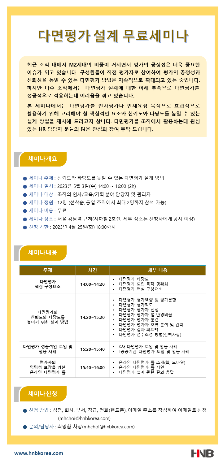 2023년 5월 3일 다면평가 설계 무료세미나 개최